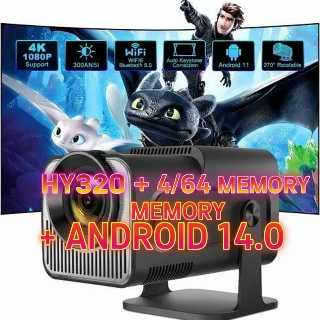 HY320 4K Android 14 Mini Projector Native 1080P 390ANSI Memory 4_64 Dual Wifi6 BT5.0 1920*1080P Cinema portable Projector